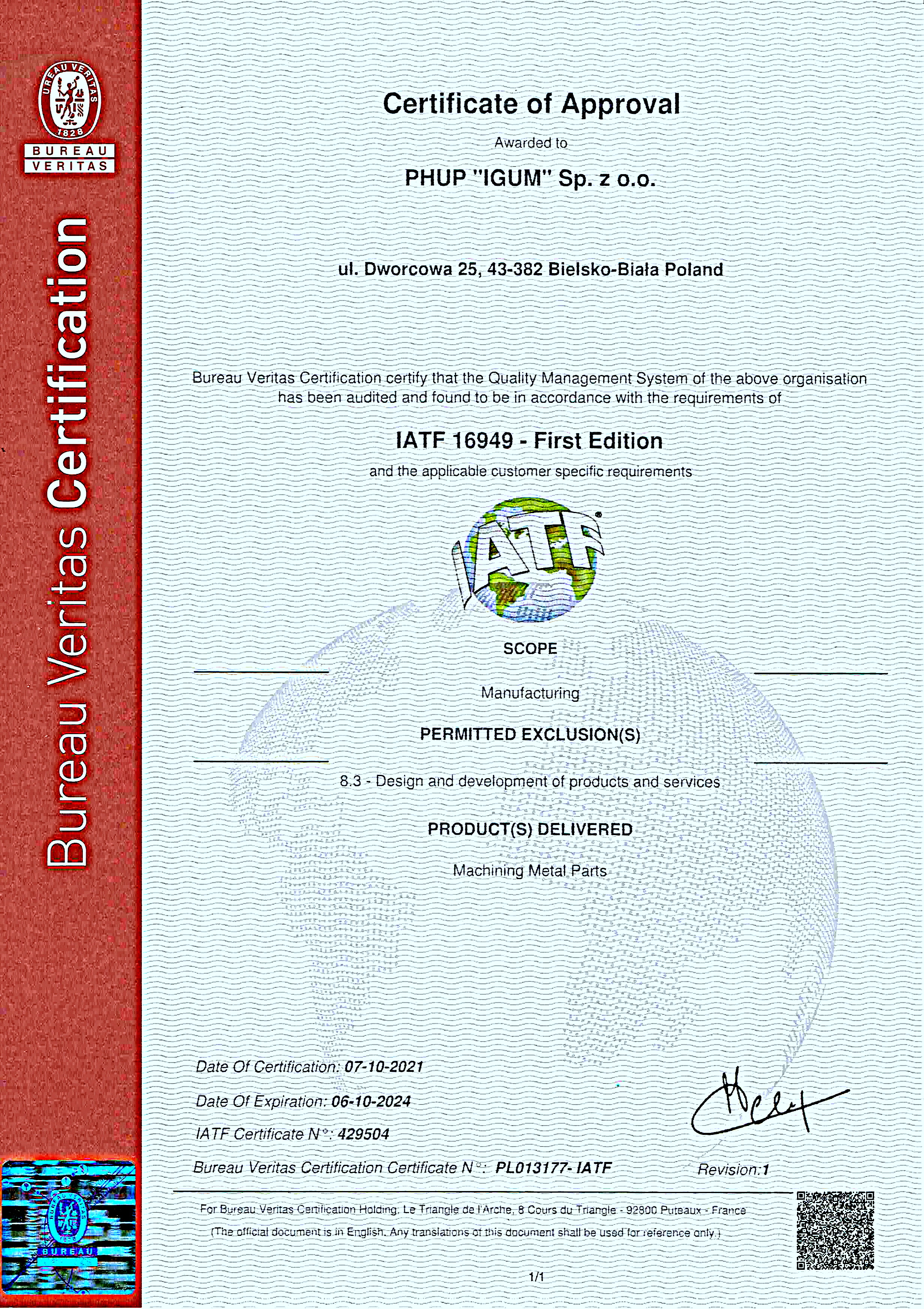zarządzania jakością ISO 9001 oraz IATF 16949,